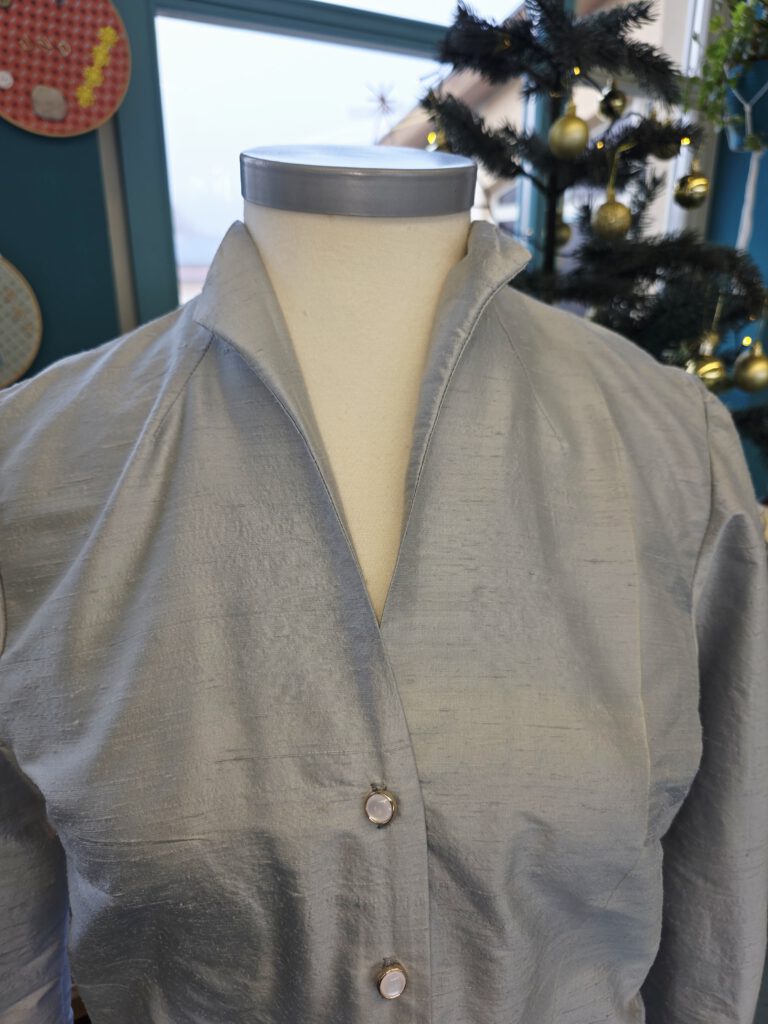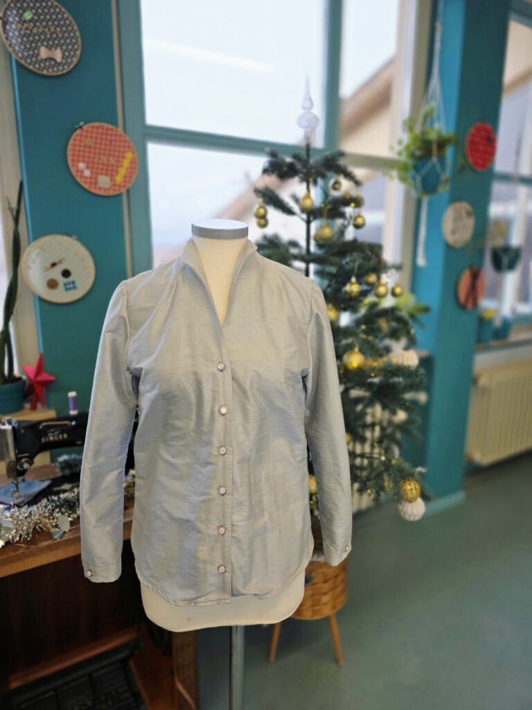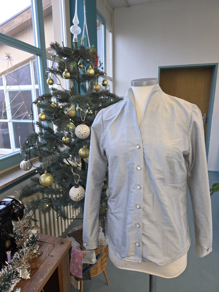 Diese Ecrufarbene Kelchkragenbluse ist pรผnktlich zum Weihnachtsfest in meiner Schneiderei entstanden – aus zarter Seide, mit Liebe zum Detail und einem Hauch Eleganz. ๐๐งต